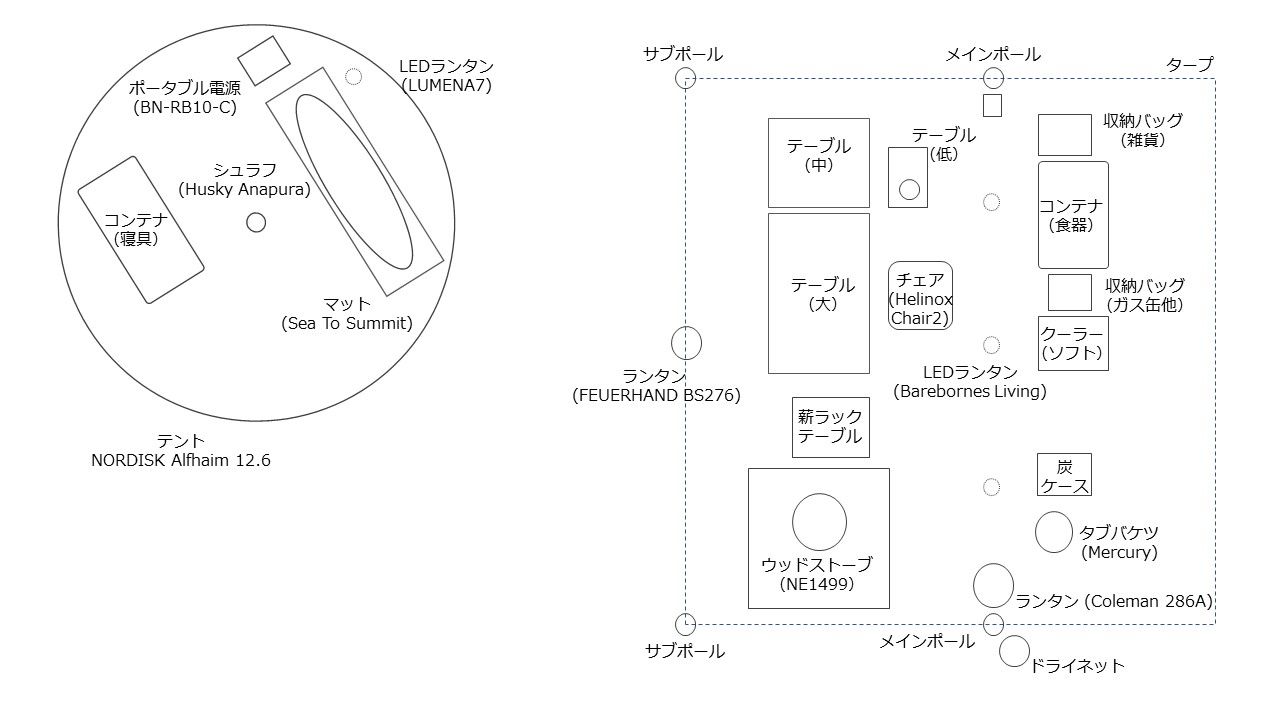 今回は、大型テントにしたが、もうそろそろ、ソロ用のテントに切り替えてもよいかと。